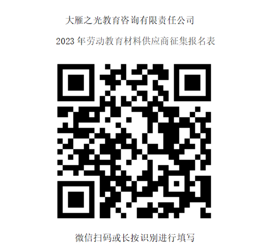 大雁之光(珠海橫琴)教育咨詢有限責(zé)任公司2023年勞動(dòng)教育材料供應(yīng)商征集公告