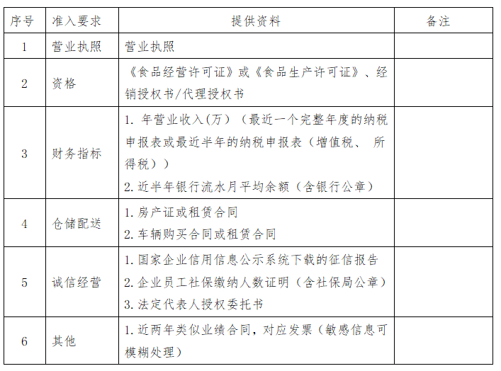 食材采購(gòu)項(xiàng)目公告